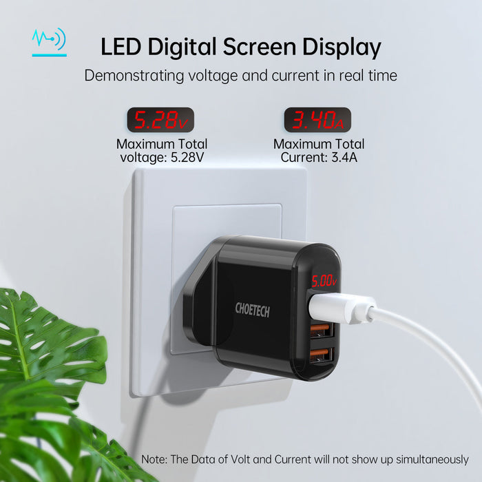 Choetech 5V/3.4A 3*usb-A digital wall charger