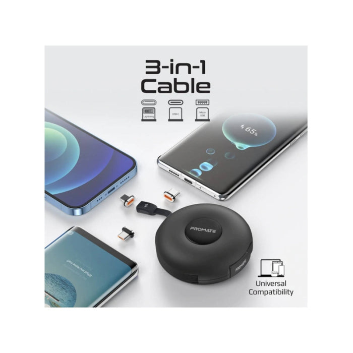 Promate 3-in-1 Retractable Magnetic Charging Cable With Multi Connectors