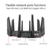 | Wireless | IPv6 MU-MIMO WiFi Encryption : WPA3 Personal, WPA2 Personal, WPA Personal, WPA Enterprise, WPA2 Enterprise, Open System & OWE UTF-8 SSID Guest Network Maximum Guest Network rule : 2.4 GHz x 3, 5 GHz-1 x 3, 5 GHz-2 x 3, 6 GHz x 3 Guest Network Connection time limit Guest Network Encryption : Open system, WPA/WPA2-Personal/WPA3-Personal WPS Wi-Fi MAC address filter Maximum MAC filters : 64 Wireless scheduler Airtime fairness RADIUS Client Universal beamforming |